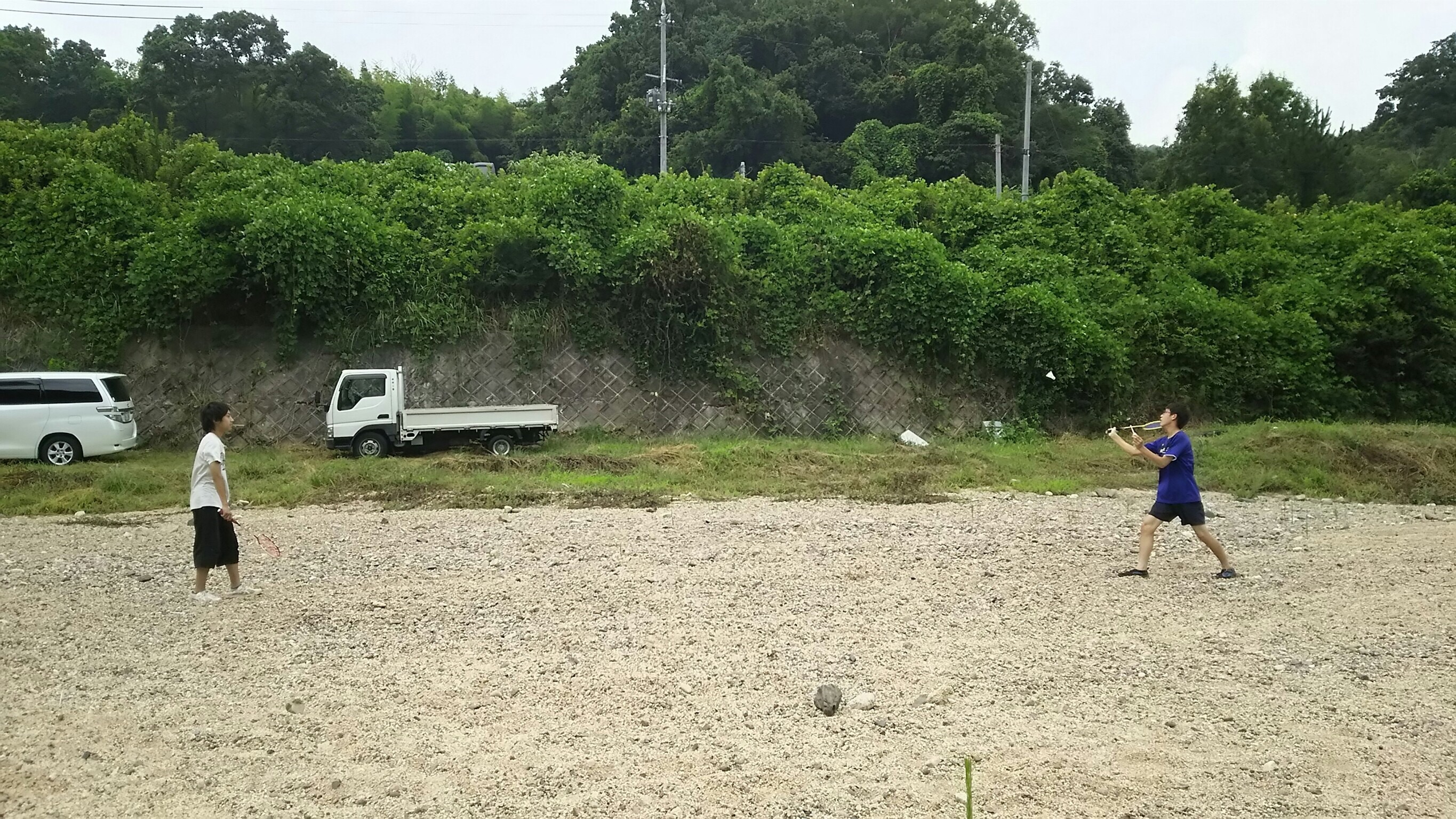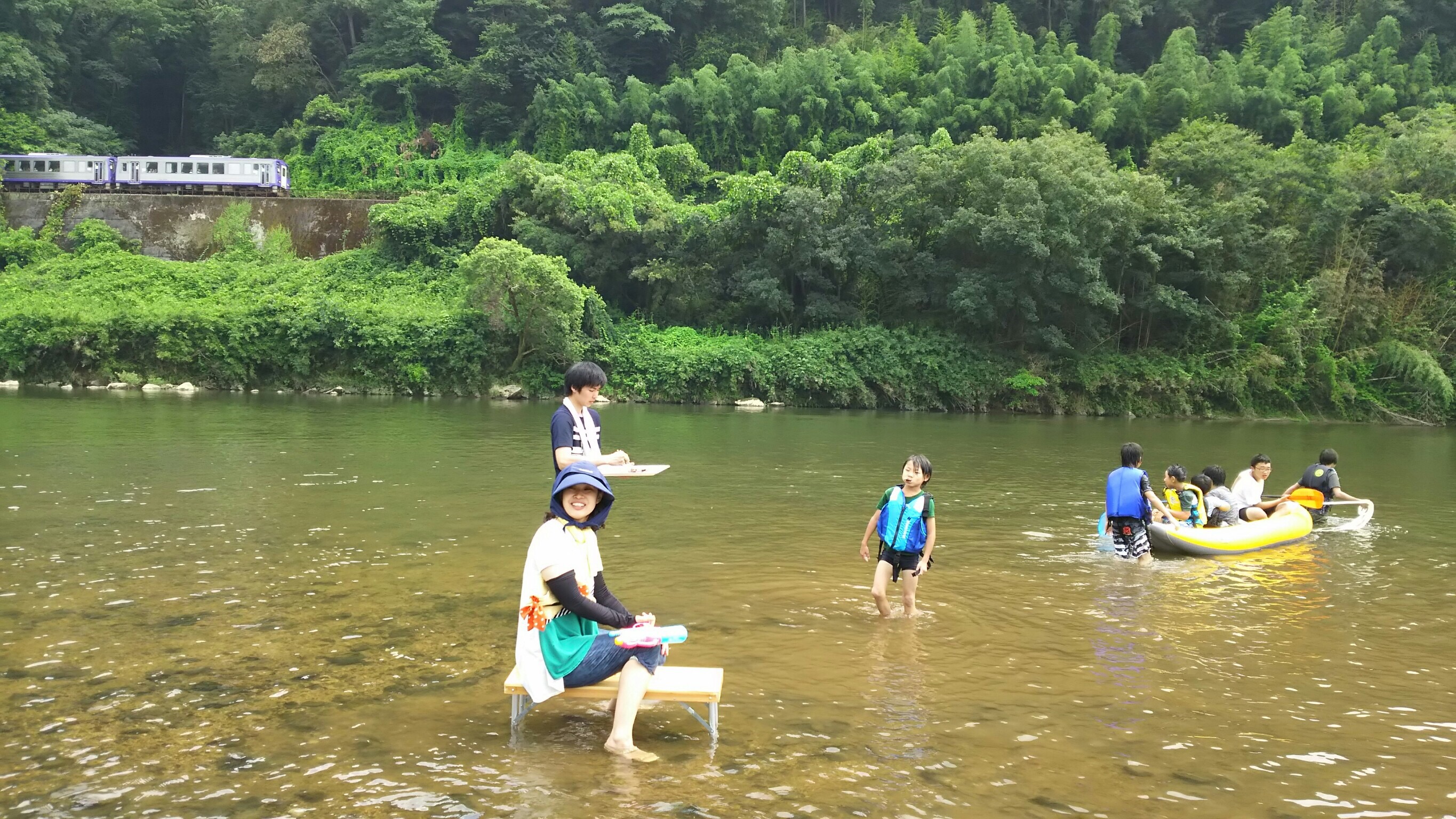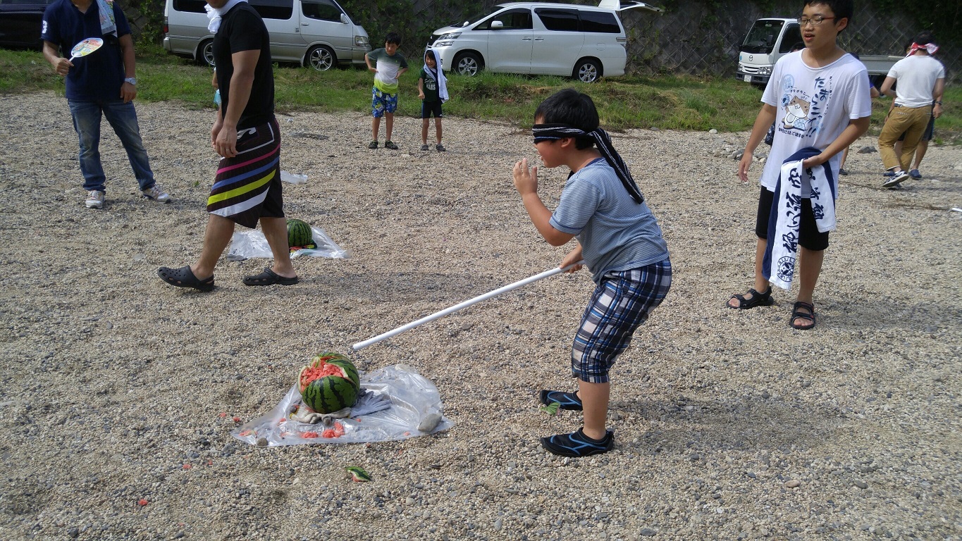 今年は真夏に実施ということもあって、川遊びがあり、水鉄砲、カヤック、バトミントン、スイカ割りと盛りだくさんの一日となりました。