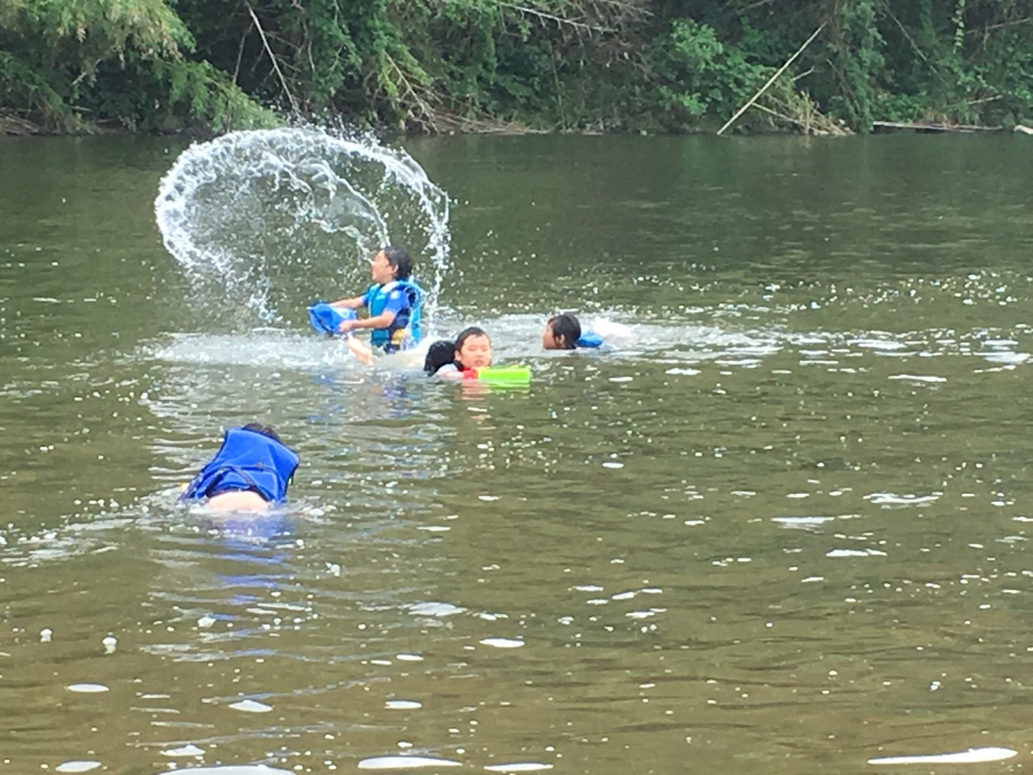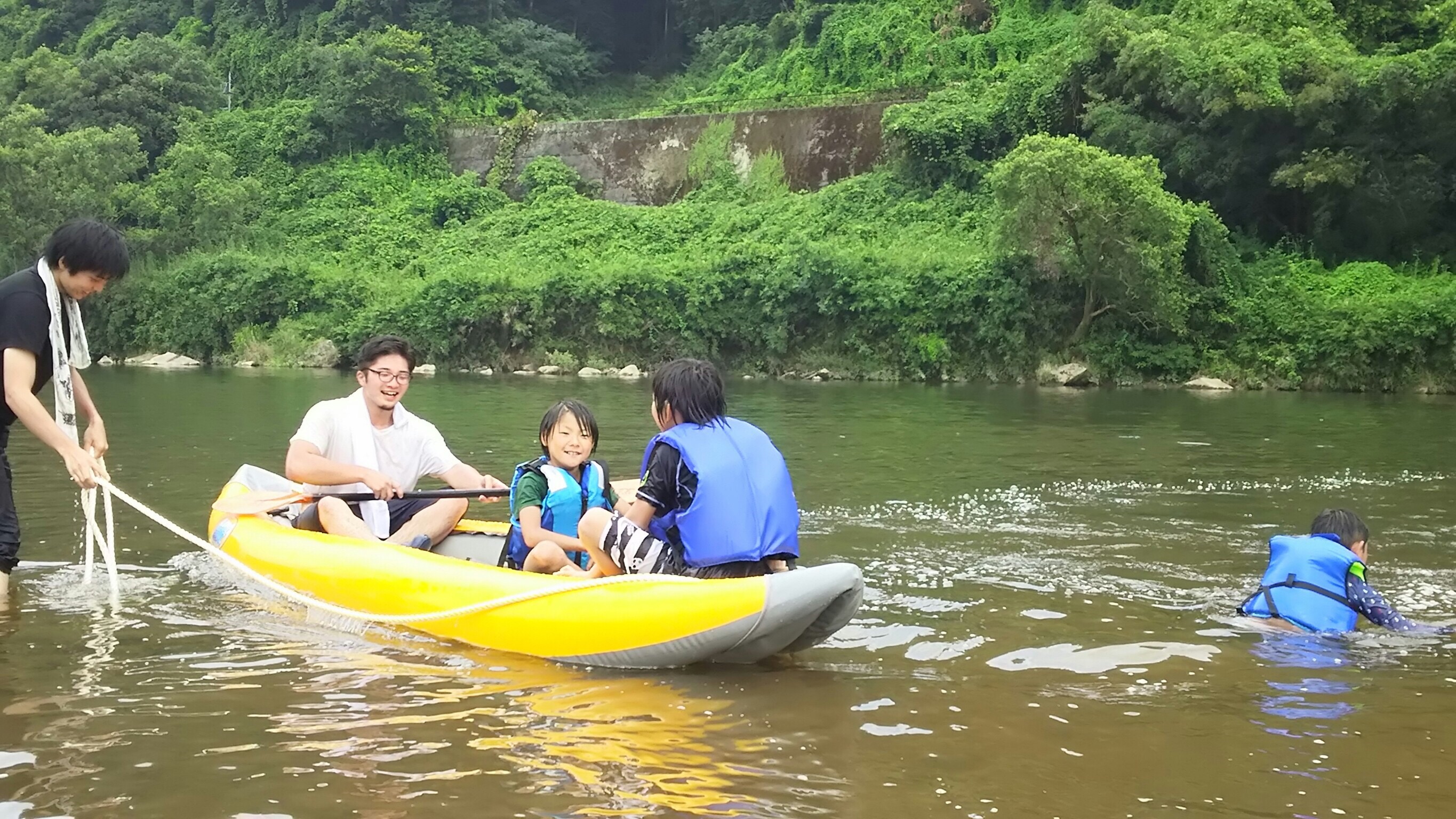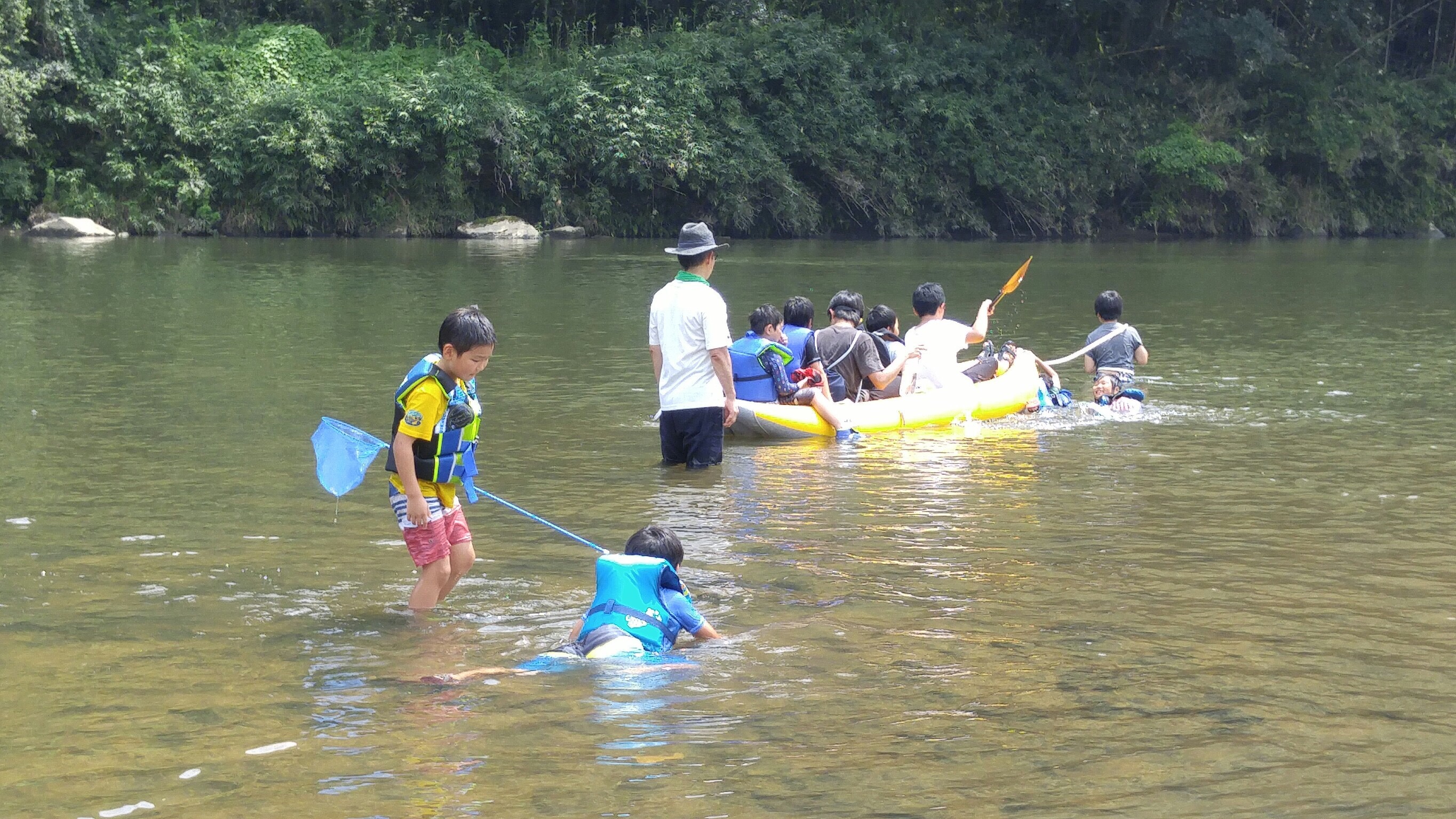 今年は真夏に実施ということもあって、川遊びがあり、水鉄砲、カヤック、バトミントン、スイカ割りと盛りだくさんの一日となりました。